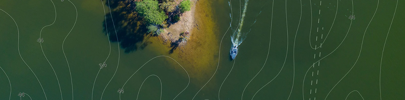 Crea mapas personalizados con un intervalo entre curvas batimétricas de tan solo 15 cm (1/2 pie) de tu lago local o de aguas desconocidas y en tiempo real con Genesis Live en la pantalla de tu HOOK Reveal.