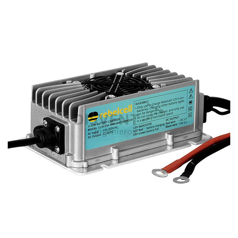 Potente cargador impermeable (IP65) para cargar de forma segura y rápida la batería de iones de litio de 36V70.