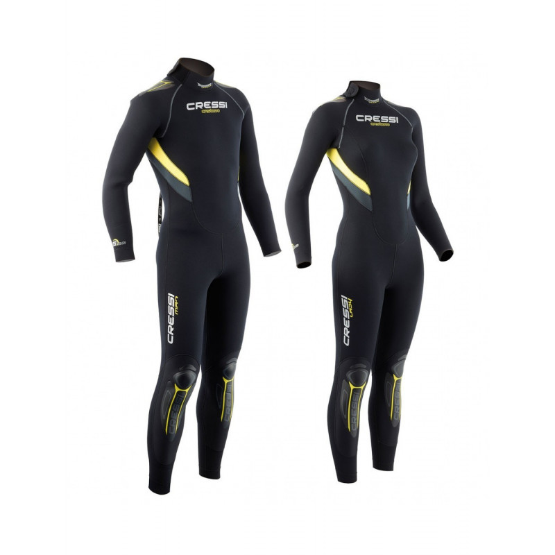 Tanto la capucha como el monopieza tienen forro en nylon, especialmente elástico en ambas caras para optimizar la elasticidad del neopreno. Utiliza la misma calidad de neopreno que el resto de la colección de trajes Cressi a pesar de ser un traje de coste muy contenido.