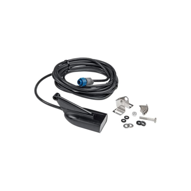 000-13889-001Transductor HDI Skimmer® de 83/200/455/800 kHz con sensor de temperatura integrado. Incluye soporte y tornillería de montaje. Cable de 6 m (20 pies) de longitud. Cuerpo azul de marca Lowrance.