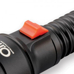 Cuerpo en aluminio anodizado con botón de encendido rojo y con muelle de retorno (dotada de serie de un botón alternativo sin muelle). Está provista de un bloqueo de goma para el interruptor al cual se puede vincular una cuerda elástica. La linterna se recarga a través de un cable micro USB, presente en la confección. La cuerda elástica permite quitarla rápidamente de la muñeca. Se vende en un maletín rígido para su transporte. 26.500 lux, 1.000 lumen e la batería tiene una duración de 1 hora y 30 minutos de uso continuo