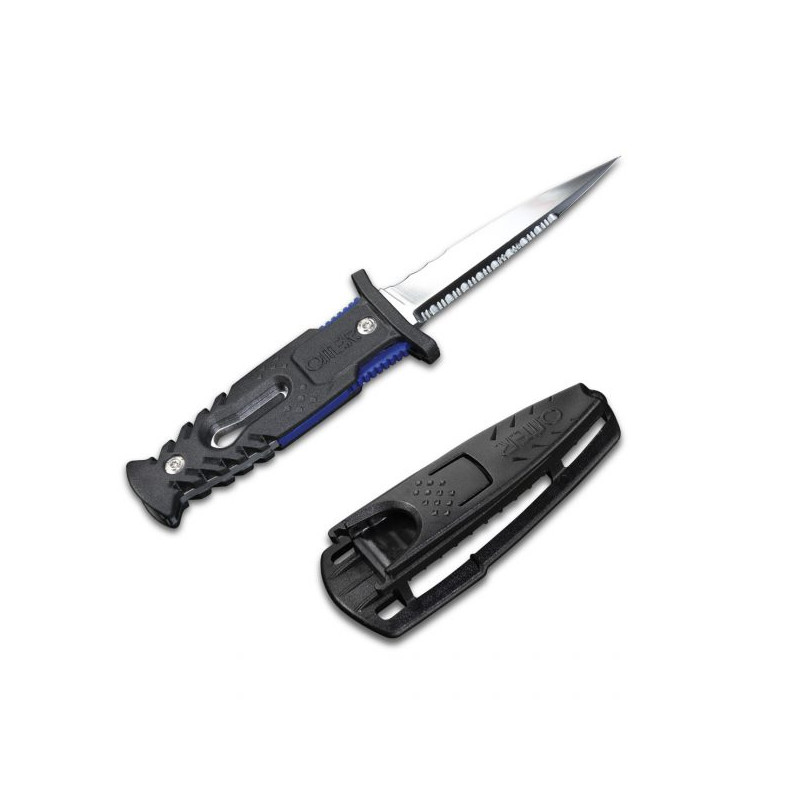 Cuchillo de dimensiones reducidas. Hoja de tipo Daga, muy cortante y resistente. Empuñadura con sistema de desbloqueo de las varillas.