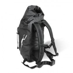 Realizada en resistente PVC con correas de hombro acolchadas y doble cierre (una sobre el pecho y una en cintura). La zona de la espalda está acolchada para el máximo confort. En la parte anterior hay un bolsillo impermeable para pequeños objetos. Lateralmente está dotada de dos gomas que pueden ser utilizados parab transportar otra parte del equipo (ejemplo las aletas).Está dotada de correa estudiada para ser utilizada también como asas.