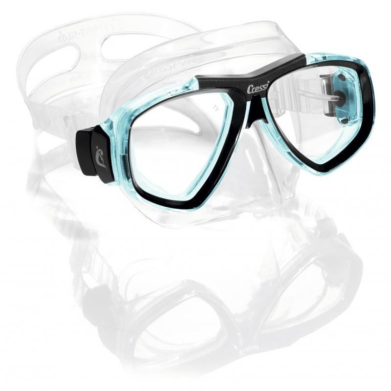 La reducida distancia ojo/lente asegura una óptima visibilidad en todas direcciones. Disponible también en versión óptica. Como todas las máscaras Cressi tiene una gran rigidez a nivel de puente central para evitar la pérdida del plano de los cristales debido a un exceso de tensión de la tira que podría provocar distorsiones ópticas.