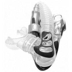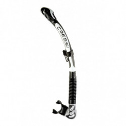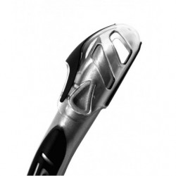 Tubo elíptico de sección progresiva en material flexible anti rotura. Completamente transparente con inserción mate en relieve con anagrama Cressi.