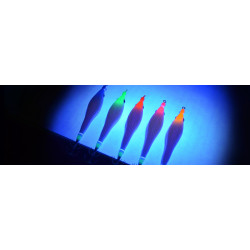La silicona es roja luminosa y es ideal para pescar en los días de luna llena.