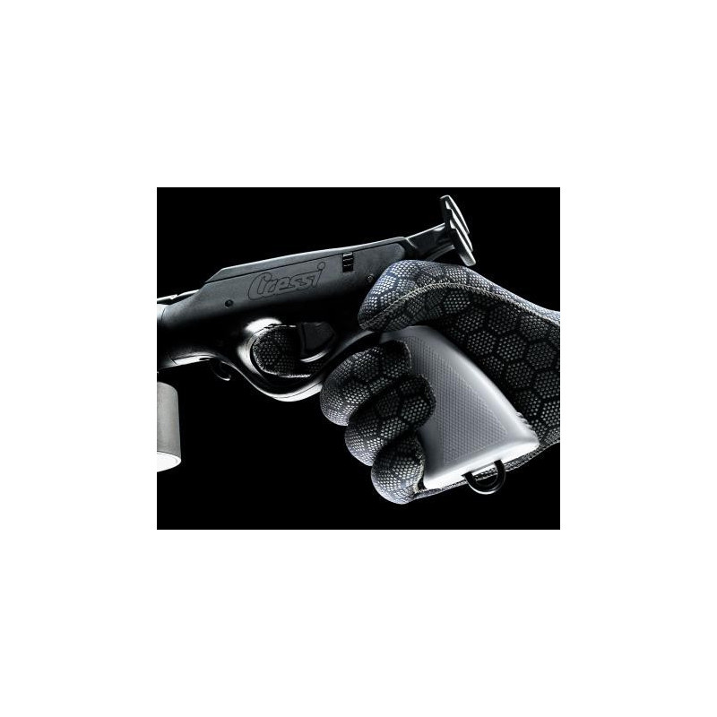 Culata con una proverbial ergonomía y versatilidad para todo tipo de pesca y disparos en cualquier posición. Ultrasuave sistema de enganche de la varilla y mecanismo a cassete, duro, fiable y que admite todo tipo de varillas con una gran tolerancia a diferentes cotas, acabados y mecanizados. Sujetahilo retráctil automático muy integrado, discreto y efectivo situado en el ángulo entre el guardamontes y el inicio de la base del tubo. Empuñadura en goma antideslizante termoplástica en color gris-plata para una buena relación discrección-visibilidad en el fondo. Apoyo de carga, sistema de fijación del carrete a bayoneta, 4 enganches de cabo diferentes.