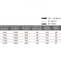 - Montaje estándar: Flecha de 6,5mm. Rockwell triface, obús Tahití inox y gomas rapidas de 18,3mm de diámetro ultra elásticas.