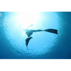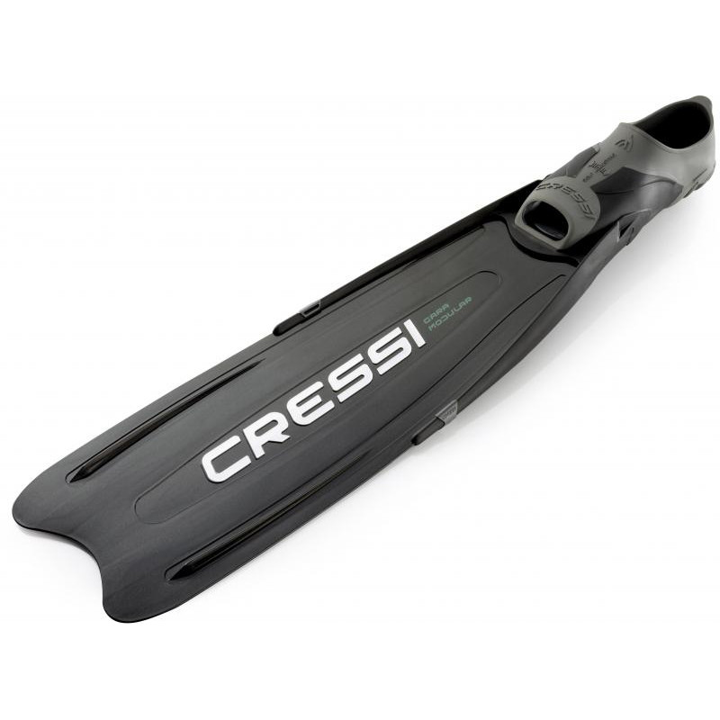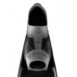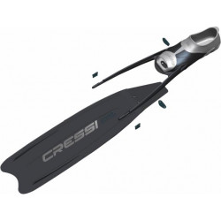 Cressi fue el primer fabricante en utilizar la composición calzante de goma-pala termoplástico y el primero en termofusionar en un solo elemento tres materiales para mejorar la trasmisión del esfuerzo.