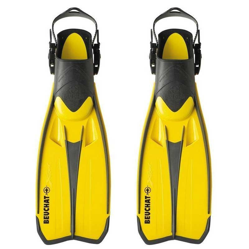 Las cinchas son de caucho y las hebillas son rotativas y de regulación rápida.