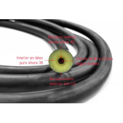 Cánula interior reforzada en color negro con un compuesto de mayor densidad(shore 45º) para maximizar la resistencia a la presión de la bola del obús sobre las paredes internas de la goma.