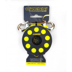 Carrete para globo de descompresión para liberación rápida del cabo sujetado por dos dedos.