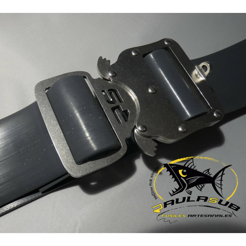 -Cualquiera de las hebillas está pensada para usarse con nuestro sistema de sujeción de lastre (cola de castor); evitando así que el cinturón se desplace a hacia la zona lumbar