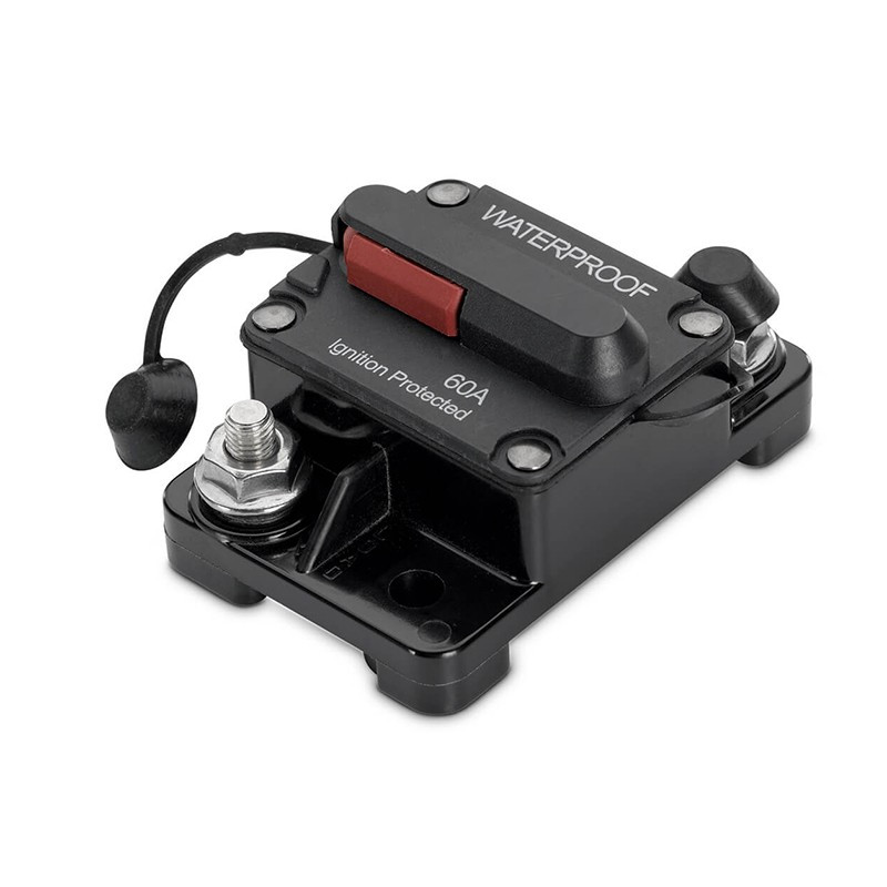 Protege el cableado del motor de pesca por curricán del barco de daños eléctricos. Cuenta con una clasificación de 60 amperios con reinicio manual. Totalmente impermeable. Compatible con todos los sistemas de 12, 24 y 36 voltios.