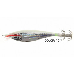 Jibionera de alta calidad equipada con doble corona reforzada. Colores láser reflectantes con escamas y grandes ojos holográficos.