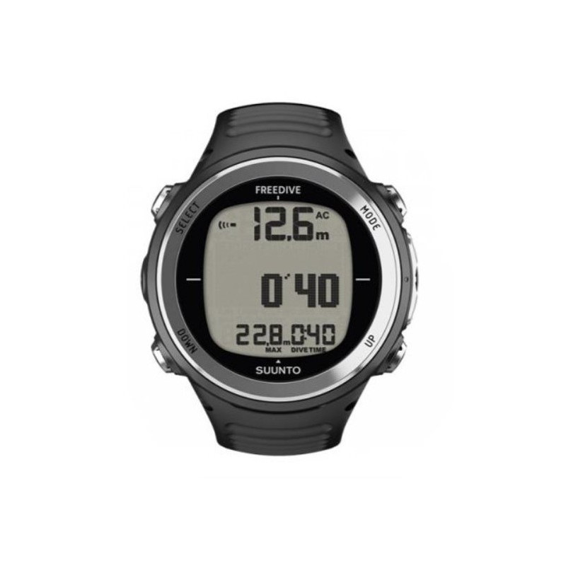 Suunto D4f Black con correa de elastómero negra, protectores antiarañazos (2 unidades) , folleto sobre seguridad, guía de referencia rápida, folleto de información legal sobre buceo con información sobre la garantía y adhesivo con el logotipo de Suunto